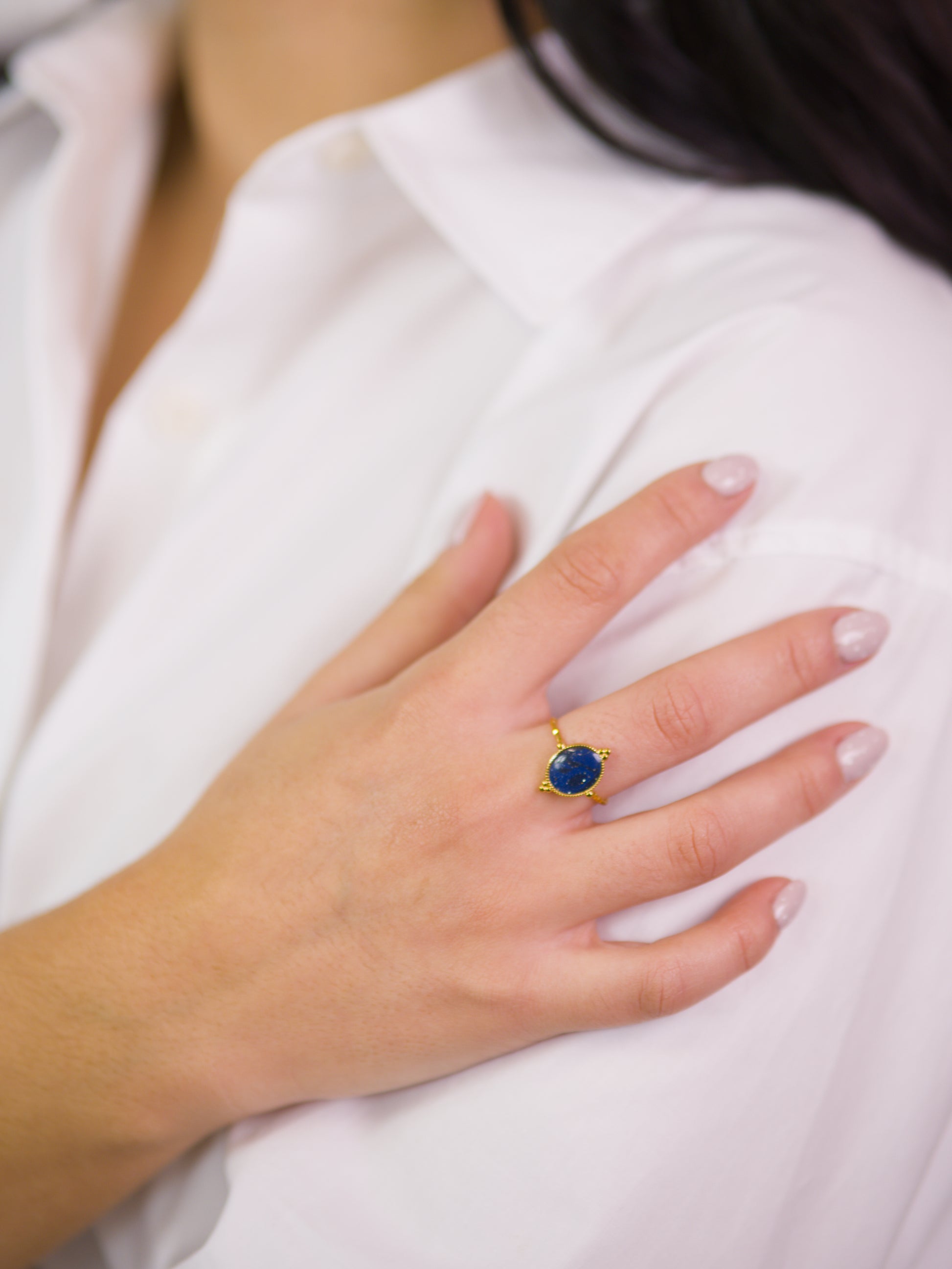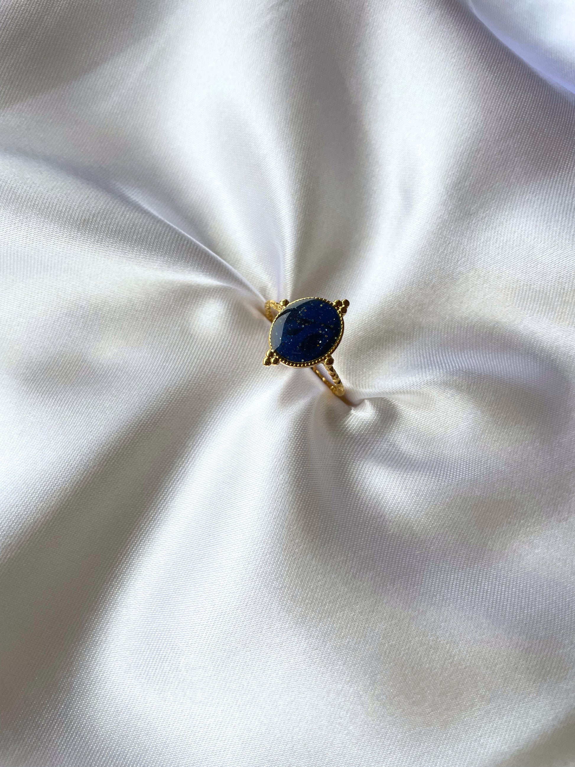 Anel ajustável em aço inoxidável, personalizado com argila de polímero e resina.