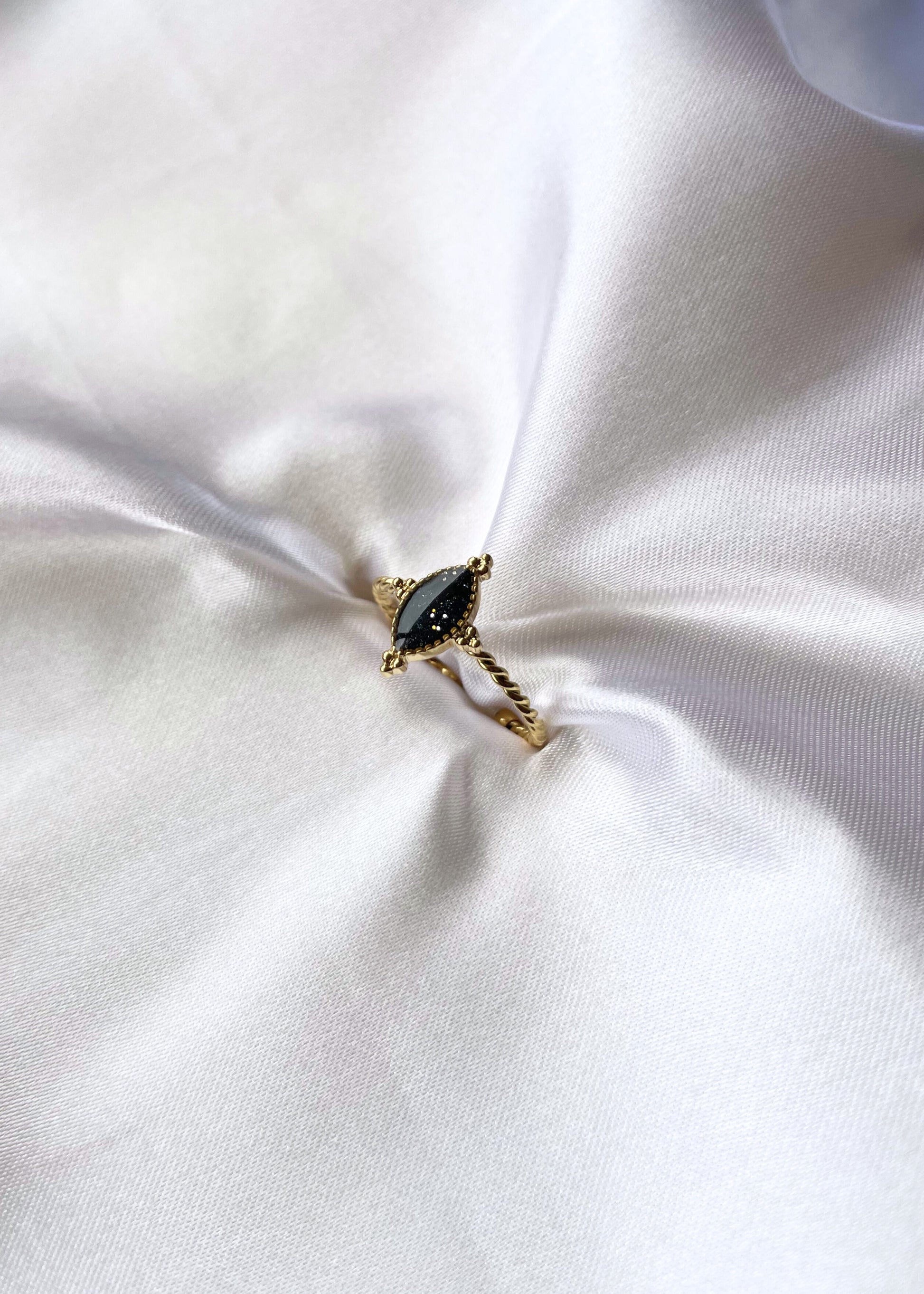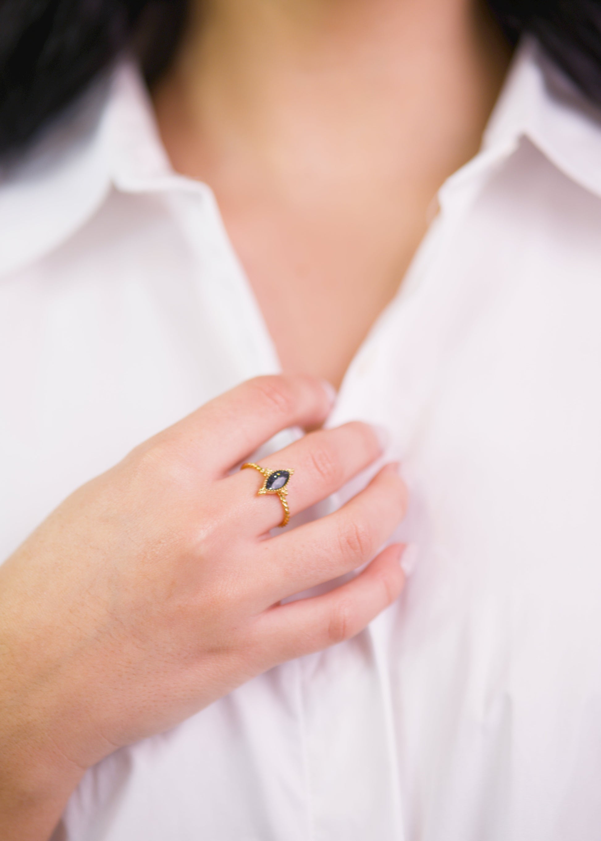 Anel ajustável em aço inoxidável, personalizado com argila de polímero e resina.