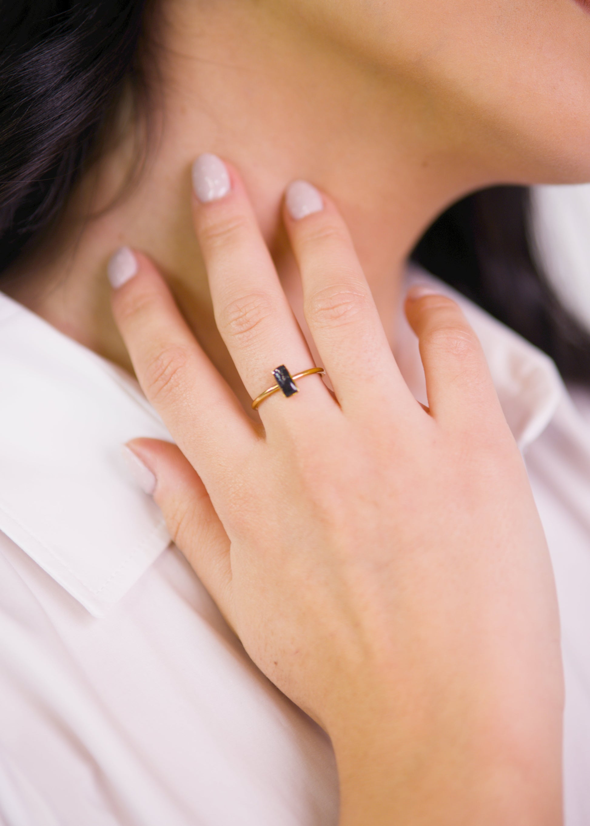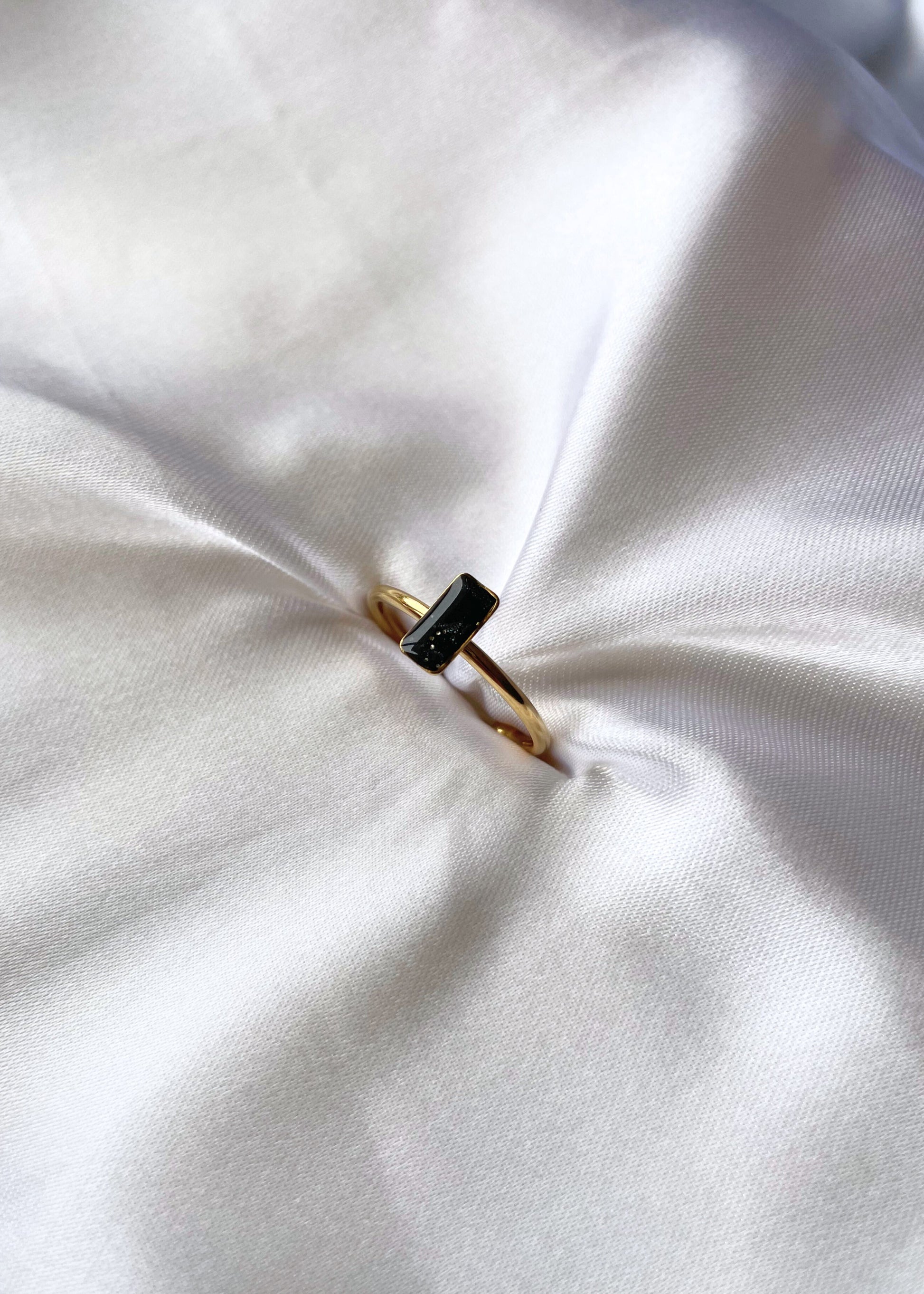 Anel ajustável em aço inoxidável, personalizado com argila de polímero e resina.